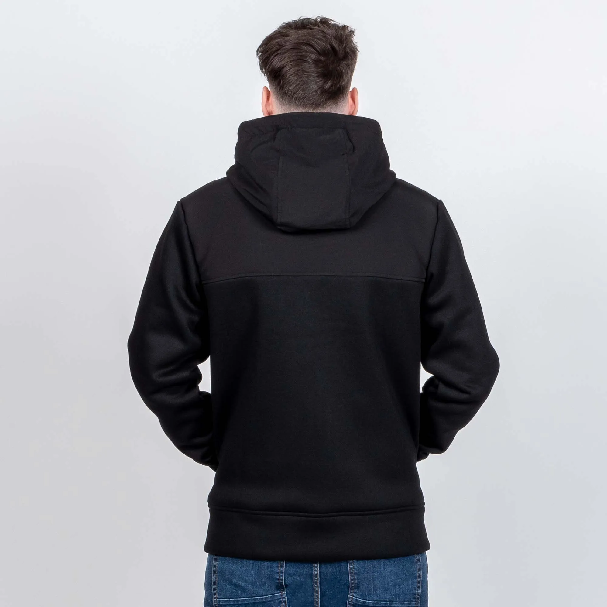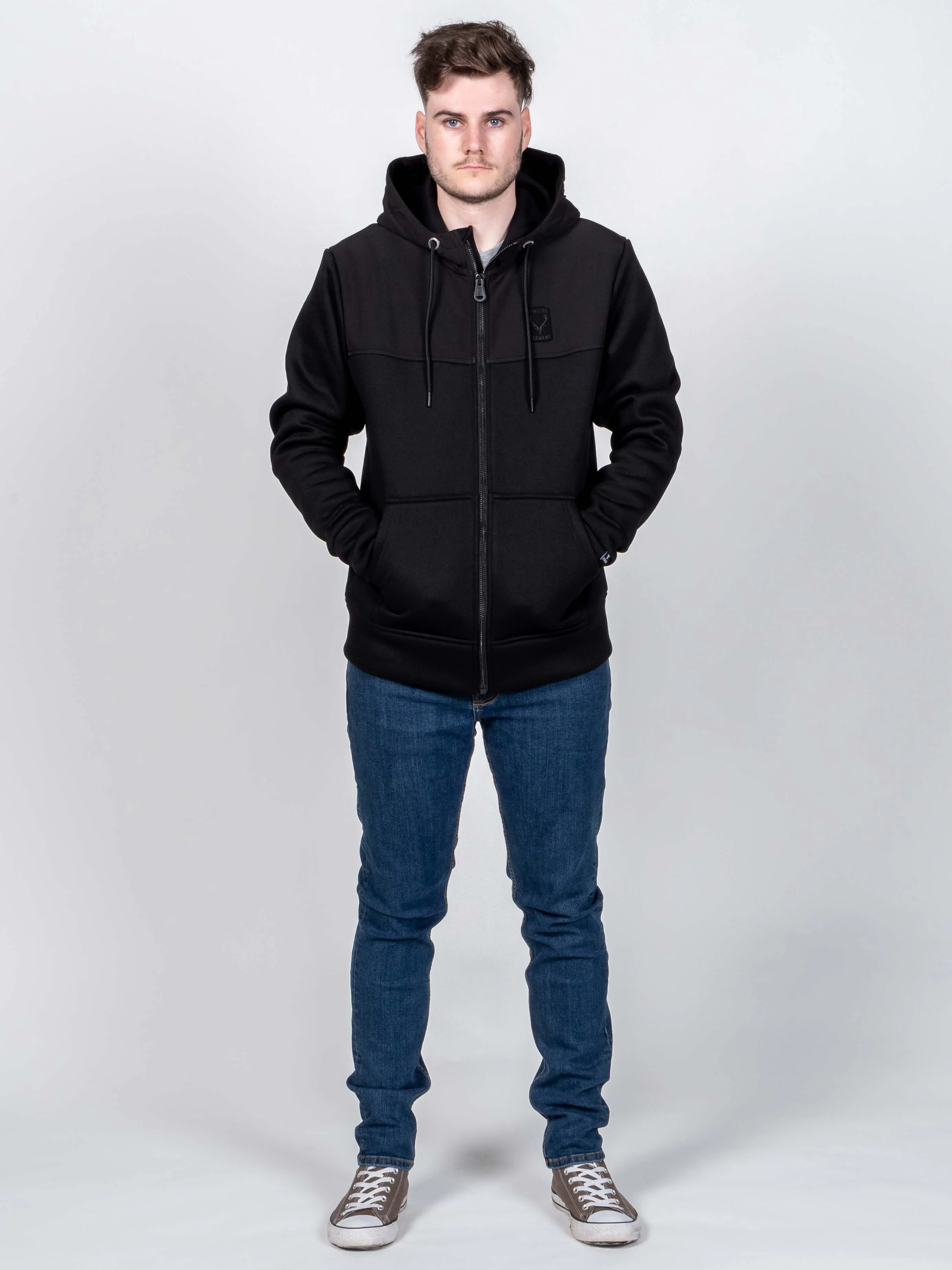 Made of a really thick and heavy polyester knit with a brushed inner, the Cirrus is bloody warm and classic in style. Water-resistant Polycotton Oxford shoulder panels and hood offer extra protection from light rain and cold wind. A full-length zip and two warm lower pockets round out this cleanly styled hoodie.