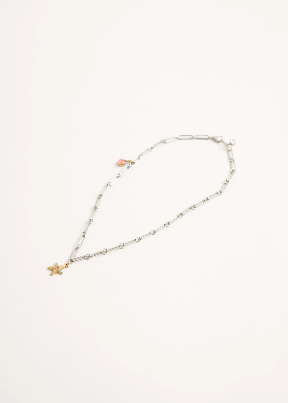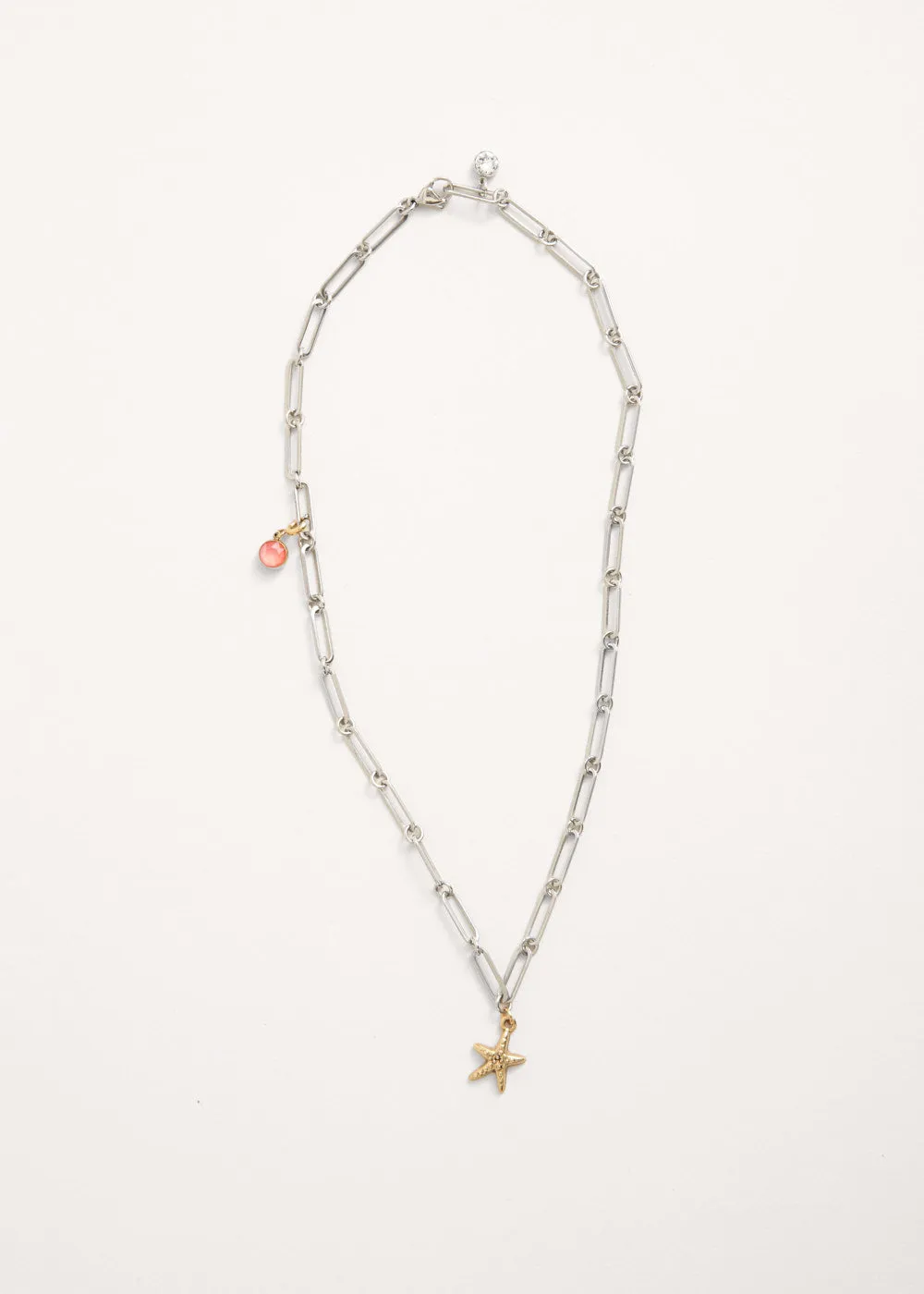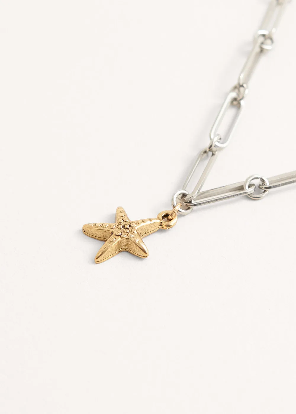 A beautiful keepsake, the Summer necklace is a modern take on classic trinket jewellery. Featuring a chunky interlinking chain with contrasting gold starfish and twinkling crystal charms, it exudes subtle elegance and is perfect for adding a little pinch of sparkles.