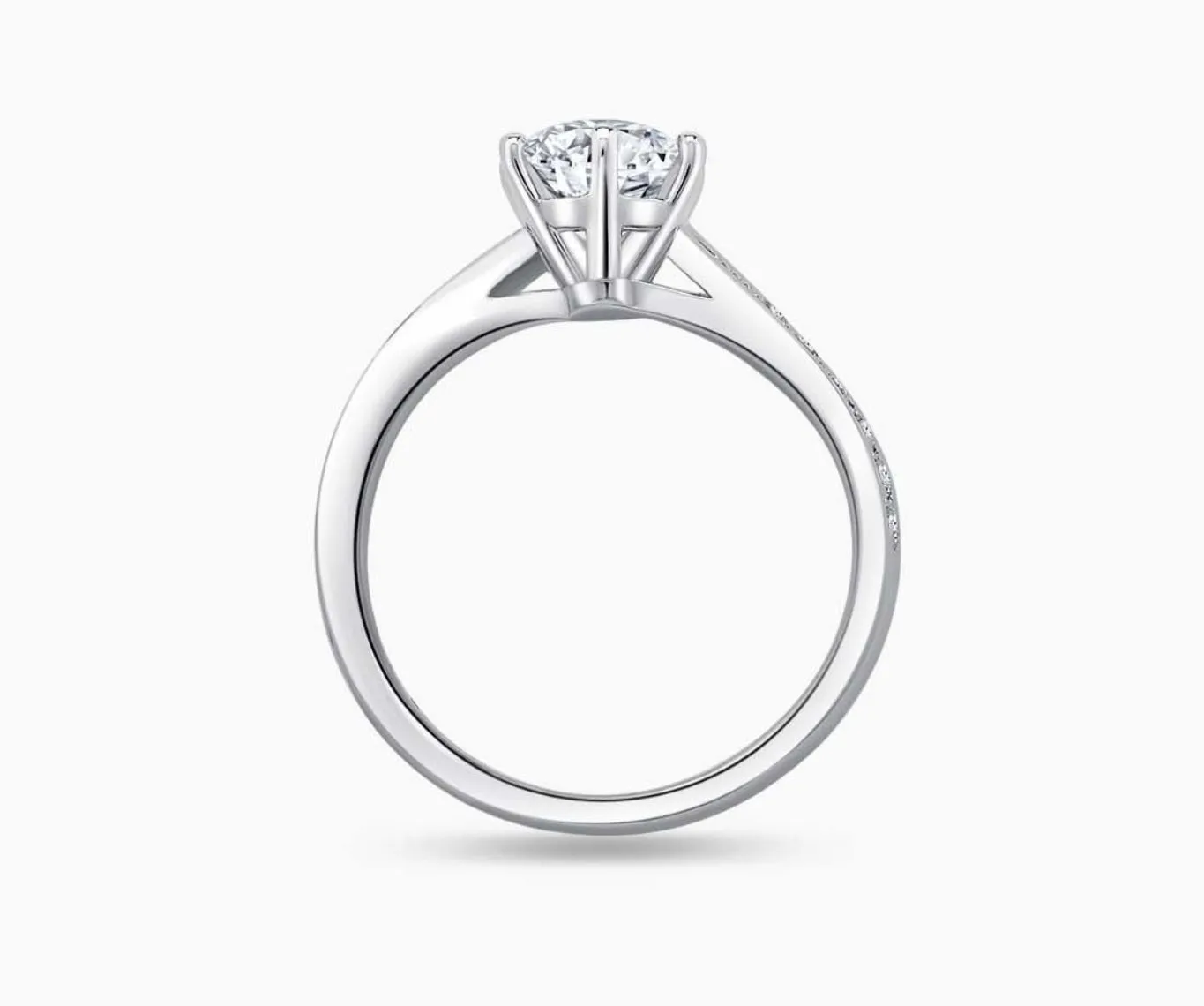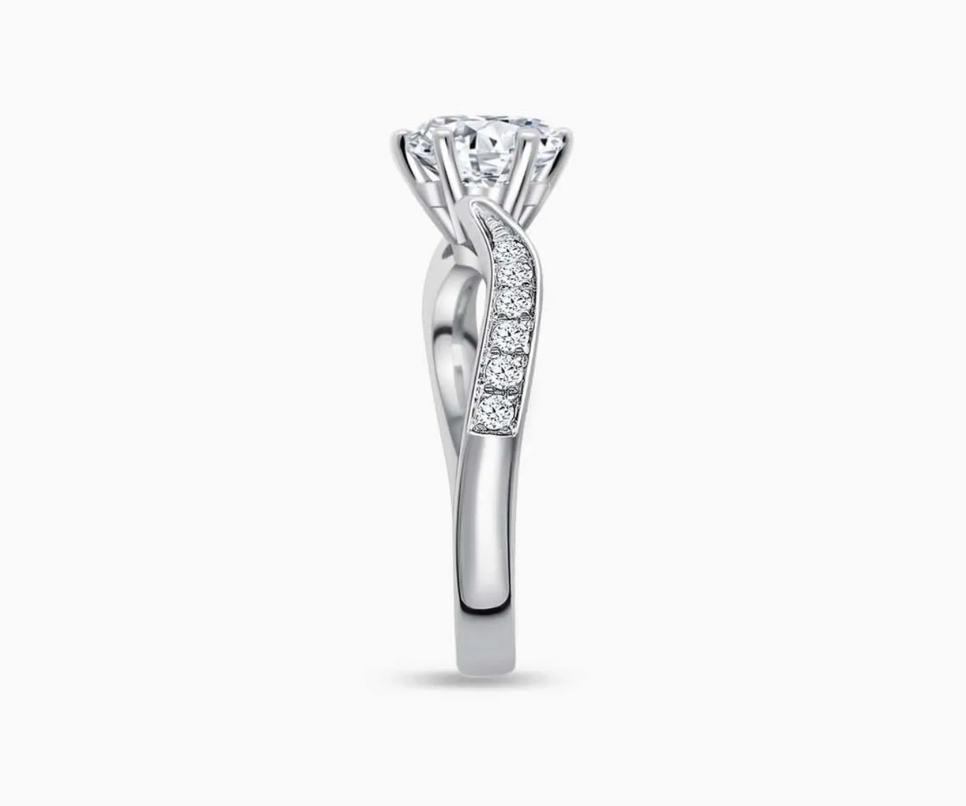 A twirl band lined with side diamonds that offers a fusion between vintage charm and contemporary vibes. The twirl band design creates a motion that directs the attention to the centre stone, accentuating the look of the center diamond to shine brilliantly on the finger.